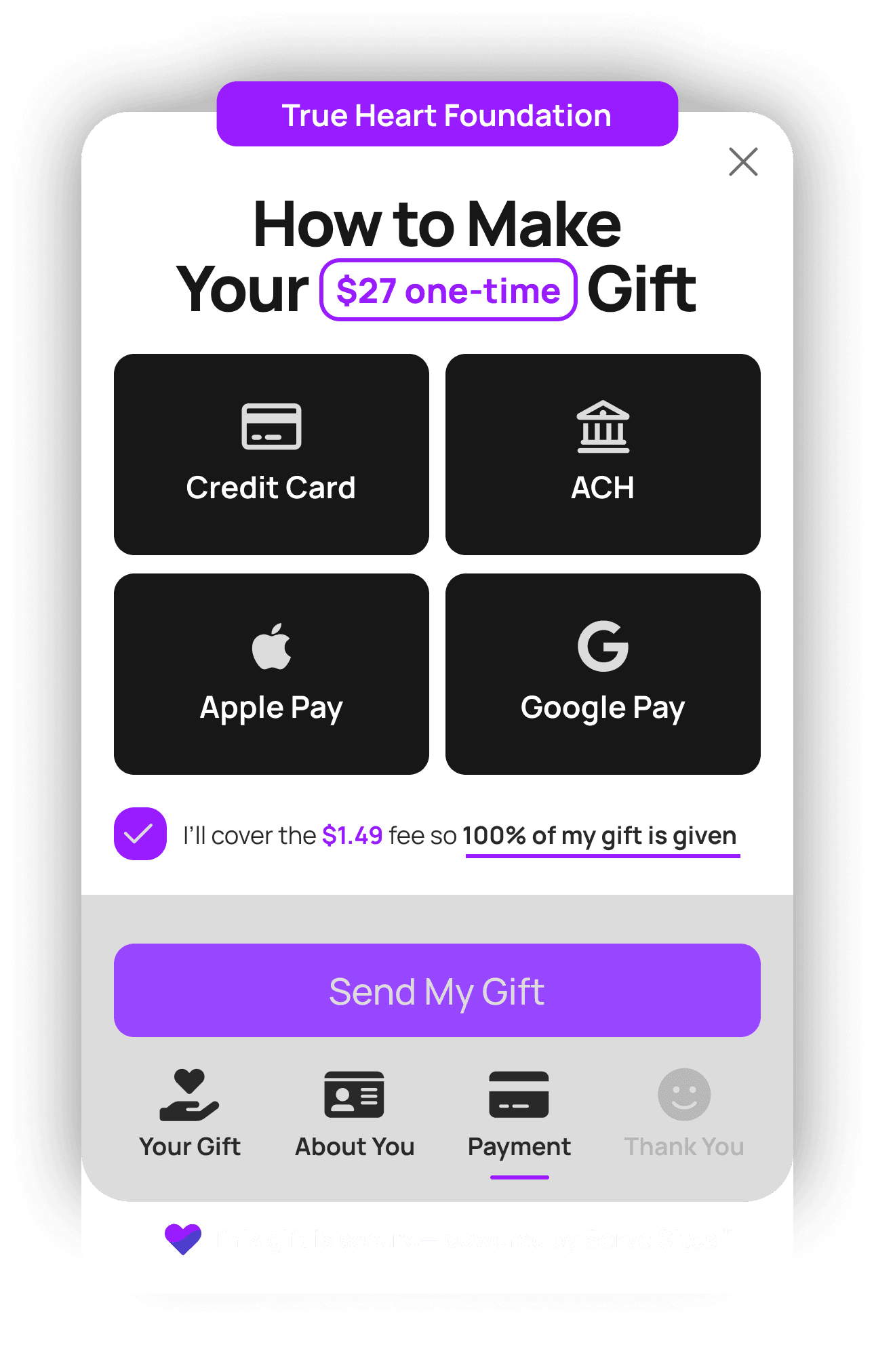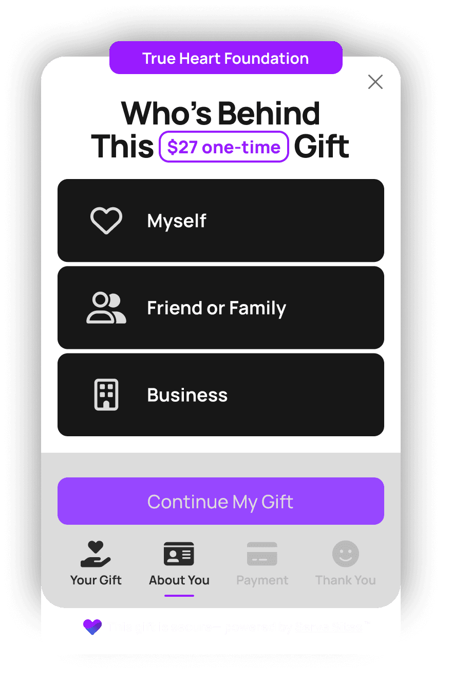 Every gift comes from someone. We thoughtfully capture who is giving, making the moment personal and connected.